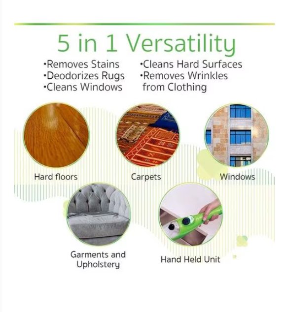 - Versatile Cleaning: Ideal for a variety of surfaces including carpets, upholstery, windows, floors, and even ovens and hobs.